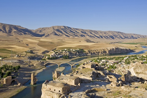 ティグリス川とハッサンケイフ ティグリス川、ユーフラテス川の源流はトルコ南東部にあり、両河川に挟まれた地域が「メソポタミア地方」。世界最古のメソポタミア文明が発祥した地域です。当ツアーでは、ハッサンケイフ付近でボートにてティグリス川の遊覧にご案内します。