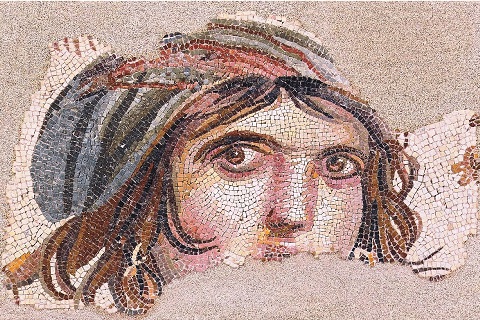 ゼウグマ・モザイク博物館 ガジアンテプにある世界最大級のモザイク博物館。古代ゼウグマ遺跡出土の 2000 年前のローマ・ギリシャ時代の精緻な床モザイク約 2,400㎡や青銅製マルス像、噴水、列柱などを年代順に3層構成で展示。特に「ジプシー・ガール」モザイクは暗室で「モナリザ」のように神秘的な眼差しを放つ名品です。