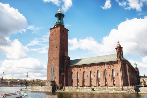 ストックホルムを彩る名建築 メーラレン湖のほとりに立つ800万個の赤レンガ、角にそびえる106メートルの塔、そして「三つの王冠」の紋章とストックホルムの象徴とも称されるストックホルム市庁舎、ユールゴーデン島行きクルーズ発着所の近くに佇む北イタリア・ルネサンス様式の1866年完成のスウェーデン国立美術館、ガムラスタンの入口に位置する600以上の部屋をもつ世界最大級のストックホルム宮殿、セルゲル広場の近く、高さ116mの銅製の尖塔をもつ赤レンガのネオゴシック様式のクララ教会など。