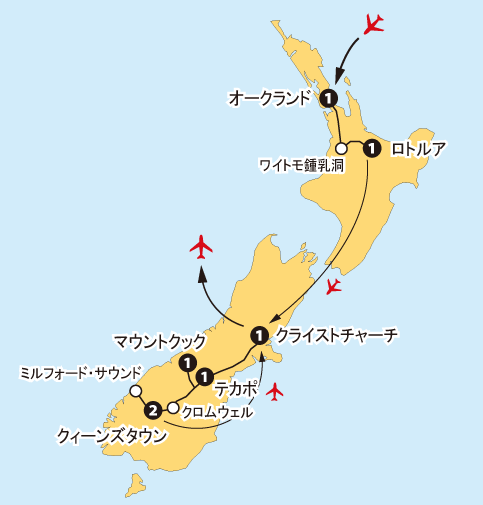 南島内の空路移動も取り入れた効率的な日程。南北両島の見所を網羅したハイライトコース