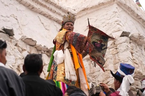 8/19発:シェー王宮で開かれる収穫祭で、初穂を捧げ神託を仰ぐ、地元の人によるラダック夏の風物詩です。