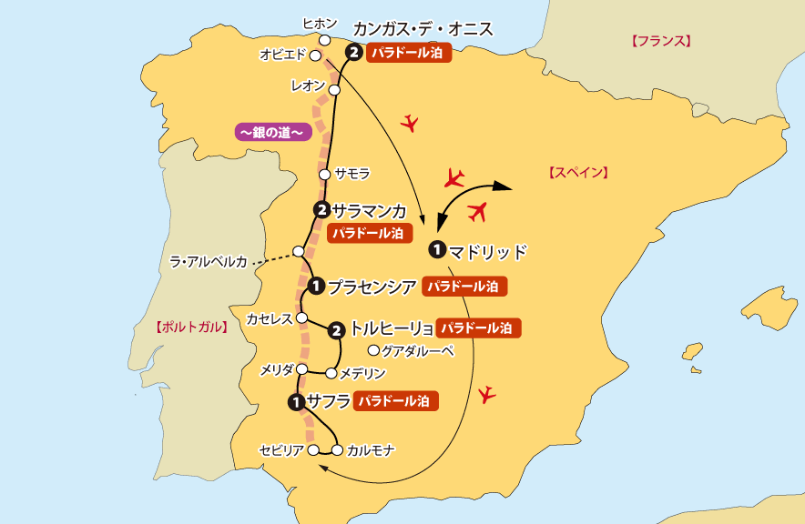 企画者より・中世の古城や王侯貴族の邸宅や別荘、修道院などの歴史的建造物を利用したスペインの国営ホテル・パラドール。5か所に7泊します。